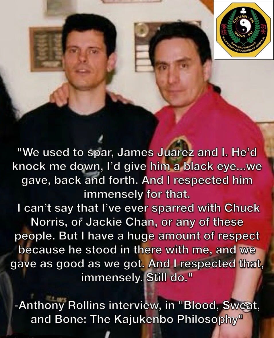 I’ve told the story countless times of my martial art history - McDojo instructor after McDojo instructor, until I found Ron Esteller and Kajukenbo. That changed my life. It was also my connection to his instructor, James Juarez, who took what Sifu Ron had taught me and expanded it in so many ways. I had found a martial art home in training with Sifu Ron and Sigung Juarez, and it formed the person I am today.