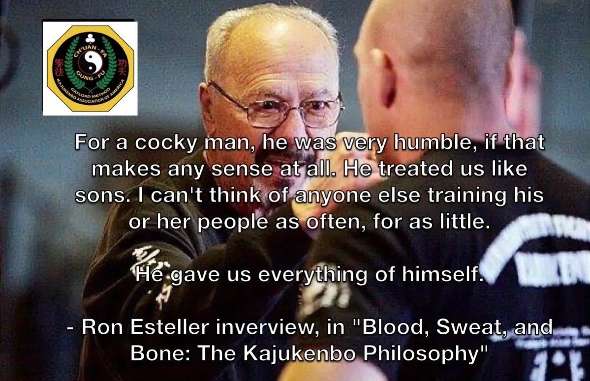 I’m always wary of organizations because of my time in McDojos. Despite my love of Kajukenbo and utmost respect for Esteller and Juarez, I stayed away from officially joining Gaylord’s KAA, the Kajukenbo Association of America. I respected Gaylord, not only as the instructor of the two men I looked up to, but as a human being. He was a cool guy.